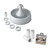 The Drinkwell? 360 Pet Fountain can provide up to five, patented free falling water streams for multiple pet owning households. The Drinkwell? 360 was designed with the multiple pet household in mind, giving owners the ability to customize their fountain with the five interchangeable spout rings included with each fountain. Pets no longer have to wait their turn for a quick lap of water; they now can each have their own fresh flowing stream of water from any angle. Utilizing the same filtration technology as the other Drinkwell? Fountains, the Drinkwell? 360 constantly circulates the water which inhibits bacteria growth, keeping the water tasting fresh and appealing to pets!Includes Replacement Filter Kit.