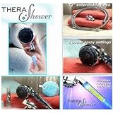 Turn your ordinary shower into a soothing paradise with the aroma cartridge.The Thera Shower has a unique water filtration system.. This eliminates damging chlorine, promoting softer, healthier hair and skin. The unique "spa chamber" can be filled with your choice of soothing, invigorating or refreshing scent cartridges for aromatherapy that suits your mood. Choose an energizing shower in morning or a relaxed soothing scent for the evening. Eight different massage settings offer a variety of pulse and spray patterns. Now, turn any ordinary shower into a personalized, sensory experience with Thera Shower!Thera Shower Features & Benefits:Unique Water Filtration - Eliminates damaging chlorine, promoting softer, healthier hair and skin10 different settings including massage and water saving featuresIncludes 1 filtration capsule and 1 spa capsuleUnique Spa Chamber for water conditioning shower beadsHand-held design with clean euro-styled finishingIndulgent, relaxing, rejuvenation, luxurious, invigorating experienceUniversal features fit any showerThera Shower Filtration Head turns your ordinary shower into a soothing paradise with the aroma cartridge. Only Thera Shower has interchangeable aromatherapy cartridges. The unique "spa chamber" can be filled with your choice of soothing, invigorating or refreshing scent cartridges for aromatherapy that suits your mood.